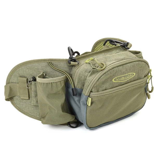 De Vision Love Handles is een zeer handige tas welke om het middel gedragen wordt, tevens kan deze tas met twee clips aan een waadpak vastgemaakt worden. Deze tas is gemaakt van nylon in combinatie met ribstop stof. De Vision Love Handles heeft twee ingebouwde retractors en veel vakken om allerlei materiaal veilig in op te bergen.